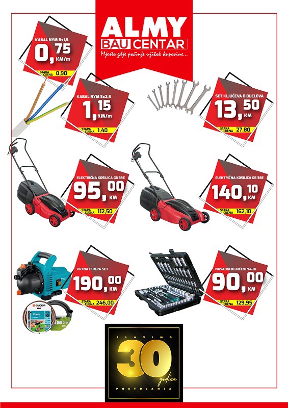 Slavimo 30 godina postojanja! Snizili smo cijene odabranih artikala u Bau centru Zenica. Akcija traje 7 dana i važi samo…
