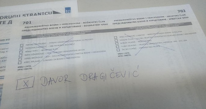 Glasač prekrižio sve kandidate i dopisao ime Davora Dragičevića