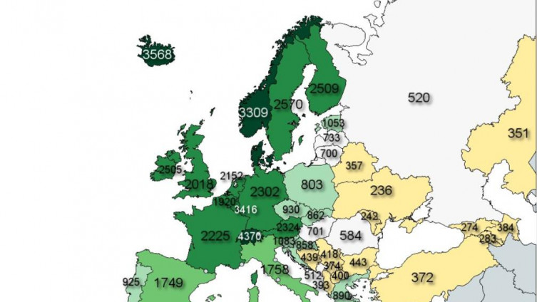 Mapa Evrope po prosječnoj neto plaći: BiH pri dnu