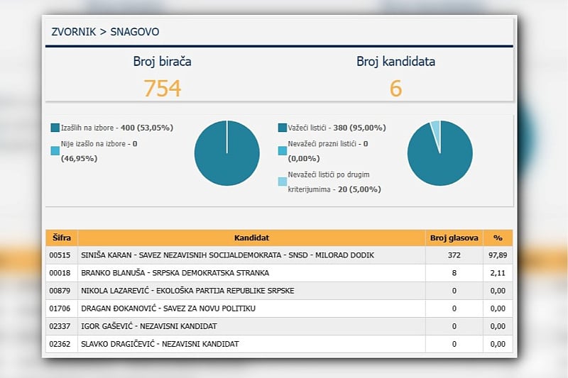 Centralna izborna komisija Bosne i Hercegovine objavila je preliminarne rezultate prijevremenih izbora za predsjednika Republike Srpske. Prema obrađenih 92,79 posto…