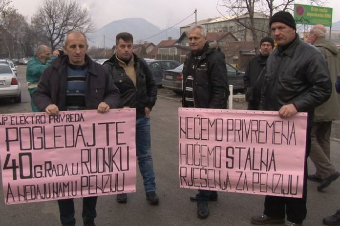 Grupa od 40-tak penzionisanih rudara Rudnika mrkog uglja Zenica održala je danas mirni protest ispred zgrade Federalne vlade u Sarajevu.…