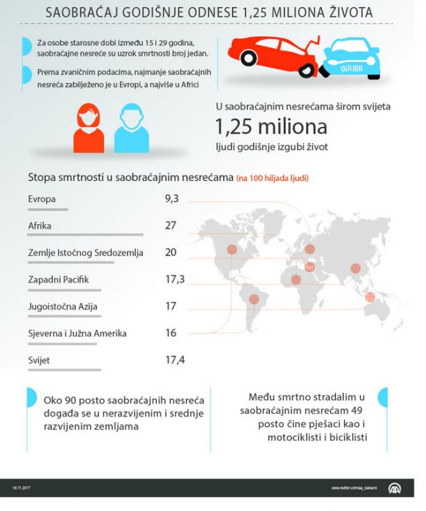 U saobraćajnim nesrećama godišnje strada 1,25 miliona ljudi širom svijeta