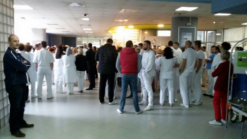 U holu Kantonalne bolnice Zenica, tačno u 10 sati kako je bilo i najavljeno, okupilo se stotinjak uposlenika ove zdravstvene…