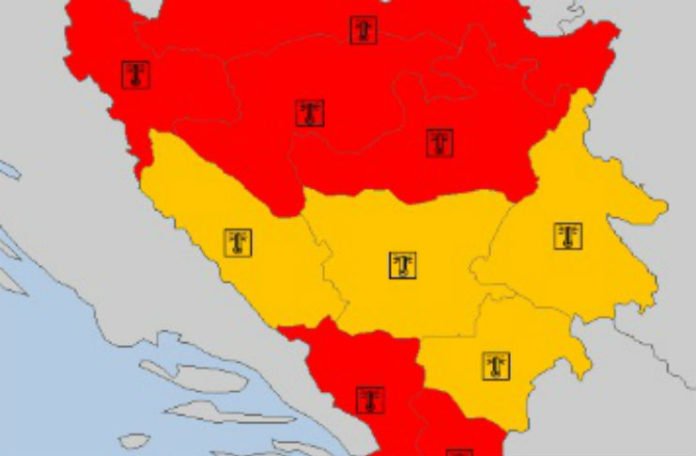 Sutra za veći dio BiH upaljen 0crveni meteoalarm