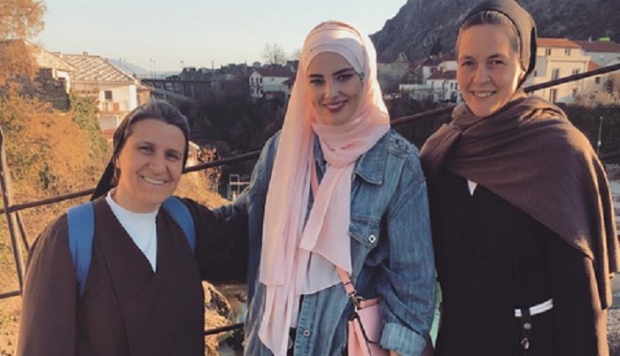Fotografija pokrivene djevojke i dvije časne sestre na Starom mostu u Mostaru za kratko vrijeme osvojila je društvene mreže u…