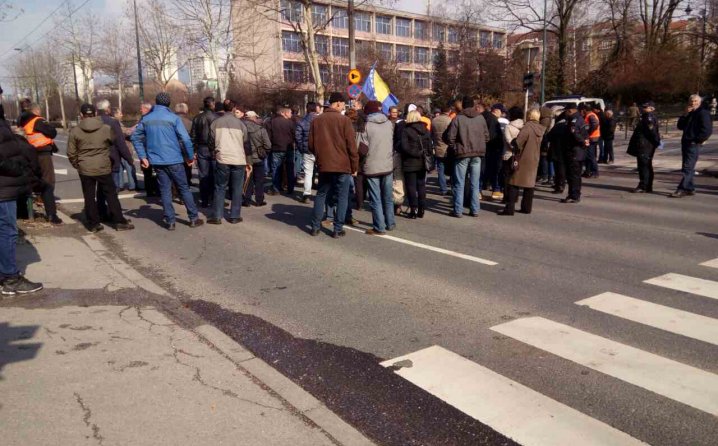 Protest radnika zeničke Željezare ispred zgrade Vlade FBiH, blokirana Alipašina ulica