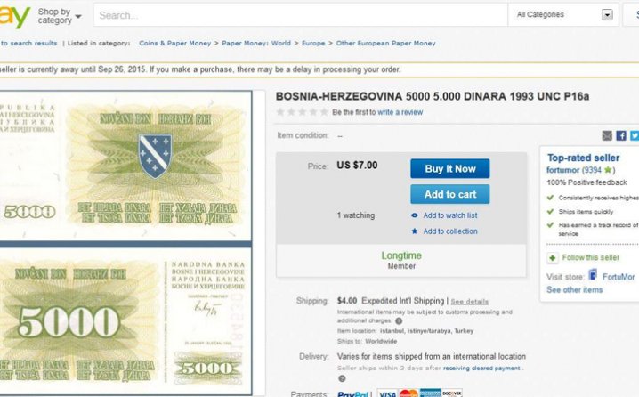 Na eBayu bogata ponuda bh. novčanica