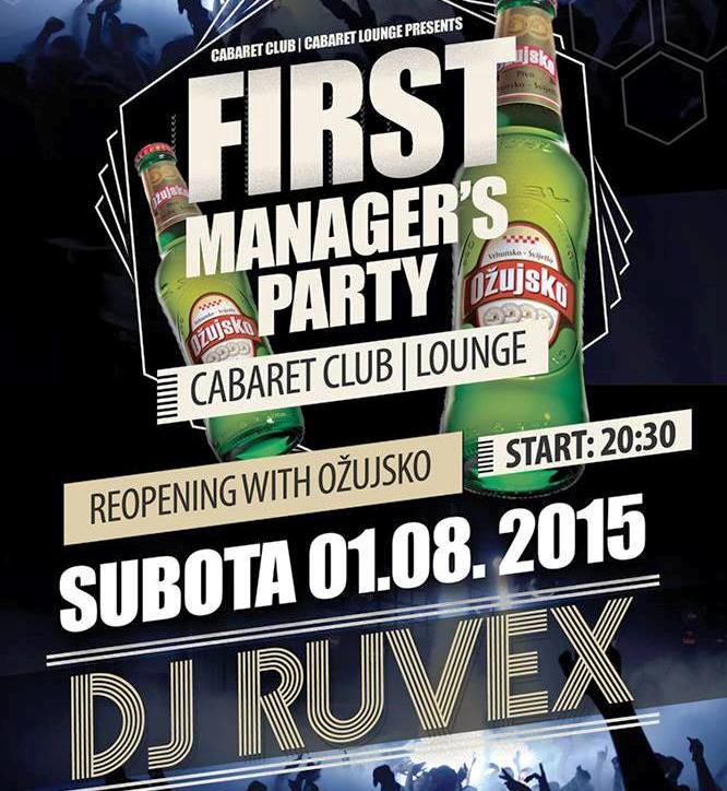 PRVI MENADŽERSKI PARTY: Ne propustite DJ RUVEX i nesvakidašnji događaj u Zenici @ Cabaret Club (1.8.)
