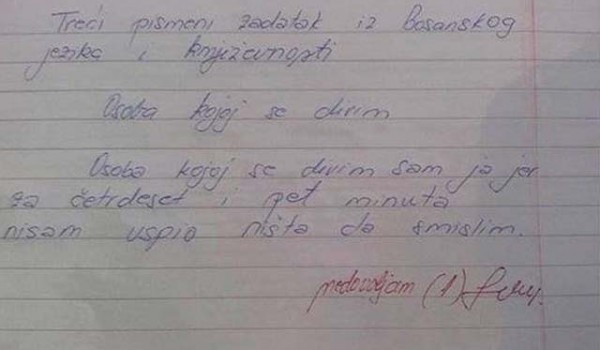 Pa zar je ovo za jedinicu!? Na temu “Osoba kojoj se divim” napisao da se divi sam sebi