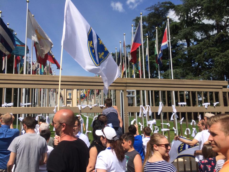 Bijele trake na ogradi ispred zgrade UN-a u Ženevi
