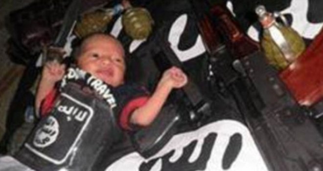 Bebu zamotali u zastavu ISIS-a pa je slikali pored kalašnjikova i granata