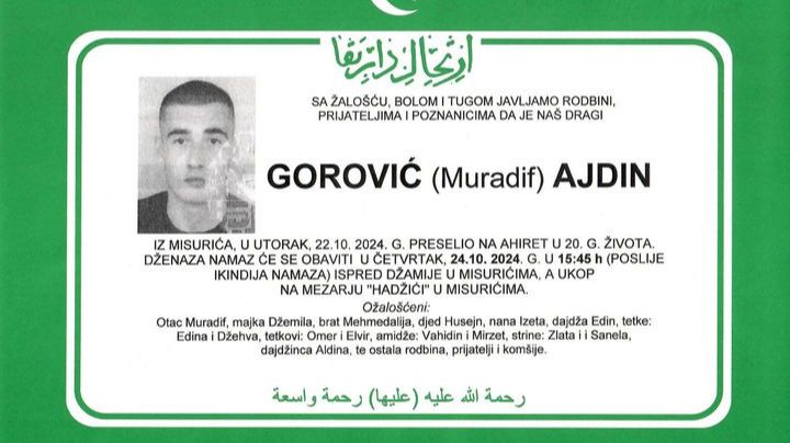 Poznat termin dženaze 19-godišnjaku iz Maglaja: Izgubio borbu s teškom bolešću