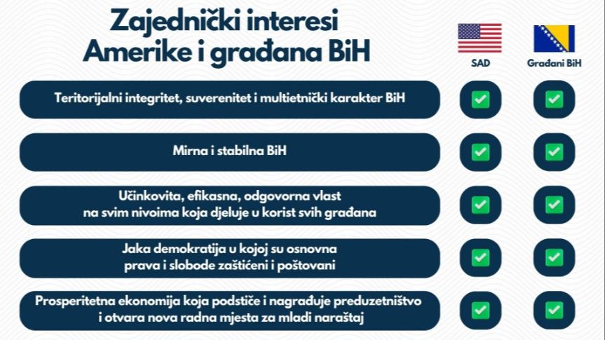 Ovo su zajednički interesi Amerike i BiH koje će SAD braniti