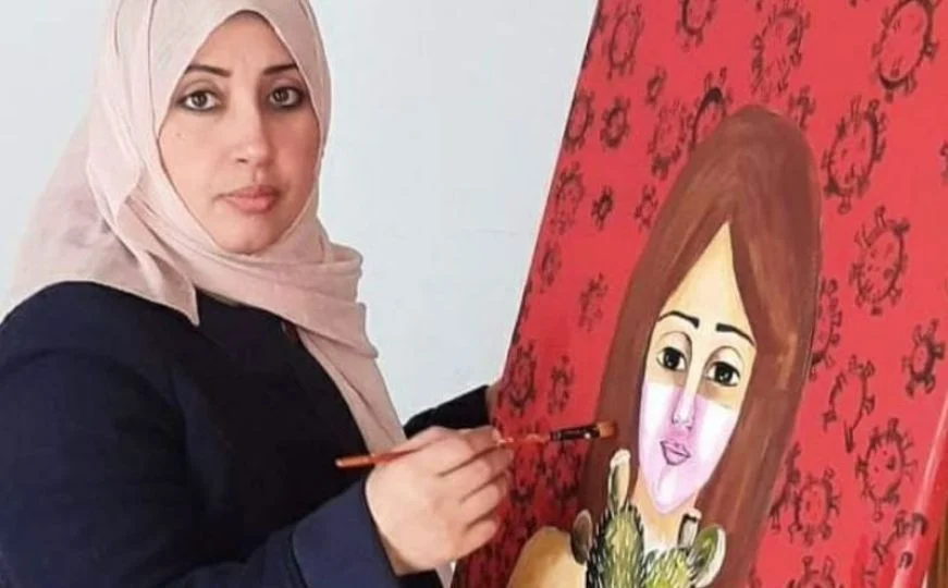 Palestinska umjetnica Heba Zagout koja je slikala sveta mjesta u Jeruzalemu te Palestinke u tradicionalnim, izvezenim haljinama u napadu na pojas Gaze,…