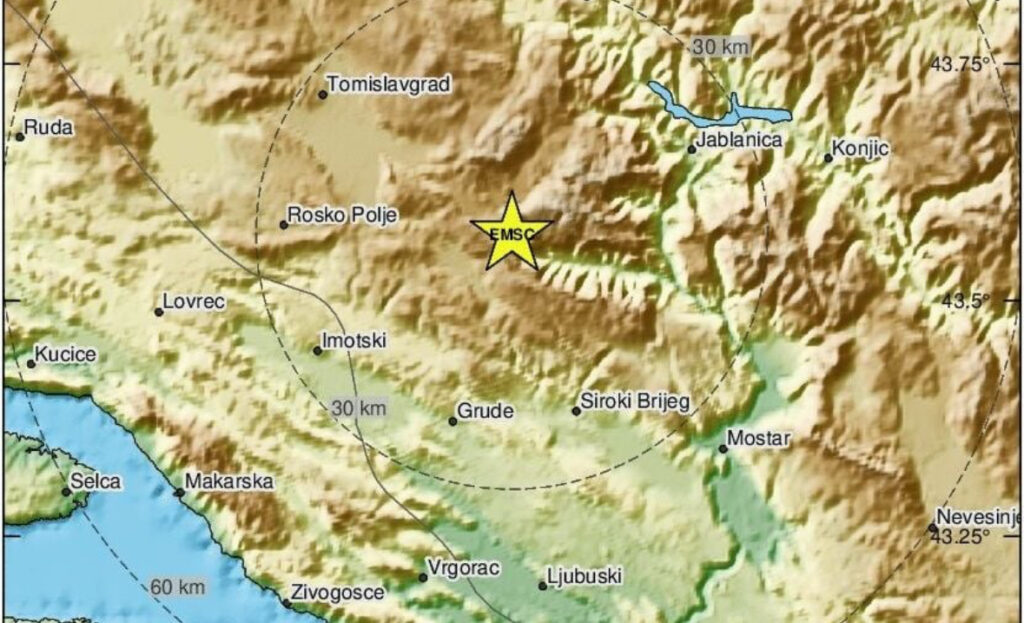 Područje Mostara je oko 12:37 sati po lokalnom vremenu pogodio zemljotres, javlja EMSC. Prema prvim informacijama zemljotres jačine 3,4 stepena…