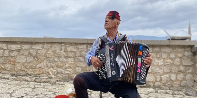 Nahid Mahmić, 69-godišnji harmonikaš iz Zenice, ovih dana boravi u Mostaru, uglavnom u staroj gradskoj jezgri gdje u narodnoj nošnji…