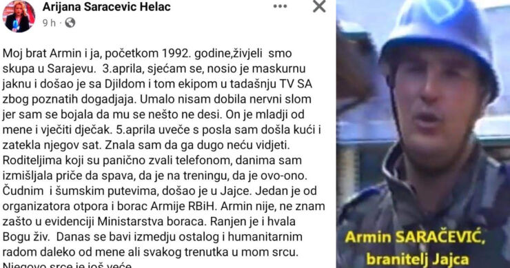 Arijana Saračević Helać objavila emotivan tekst o mlađem bratu – organizatoru otpora i borca Armije RBiH
