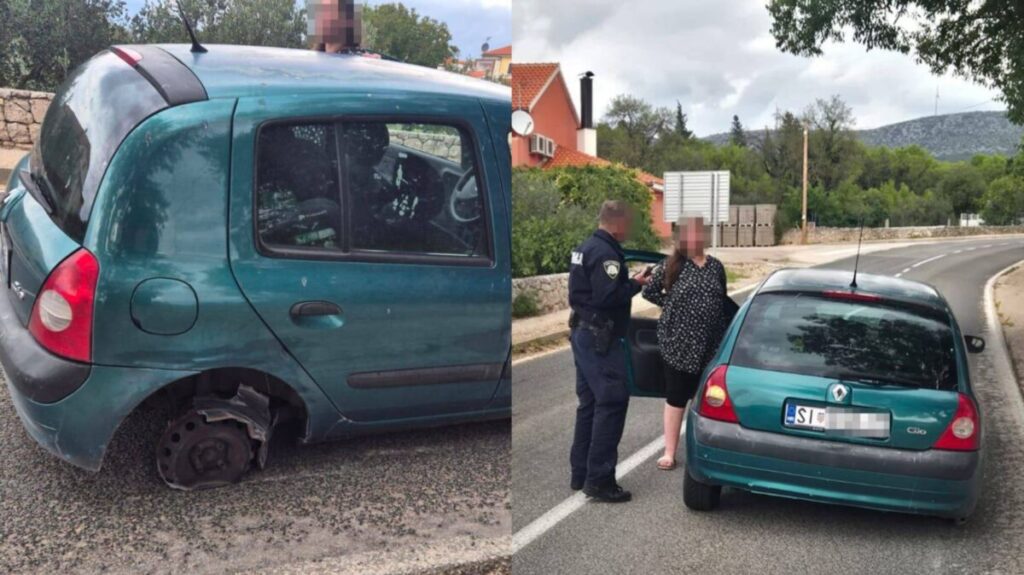 Nevjerovatan prizor zabilježen je na cesti između Šibenika i Lozovca, gdje je vozačica Renault Clija kilometrima vozila automobil bez guma…