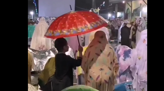 Dobročinstvo prema majci: Dok klanja, sin joj drži kišobran (VIDEO)
