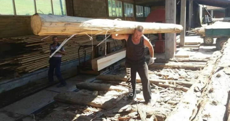 Zavidovići: Radnik u pilani nosi balvane na ramenu