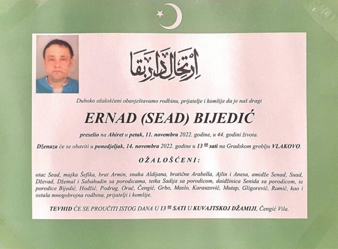 Tuga u porodici poznatog bosanskohercegovačkog pjevača Armina Bijedića. Kako saznajemo, Arminov brat Ernad preminuo je u petak 11.11.2022. u 44.…