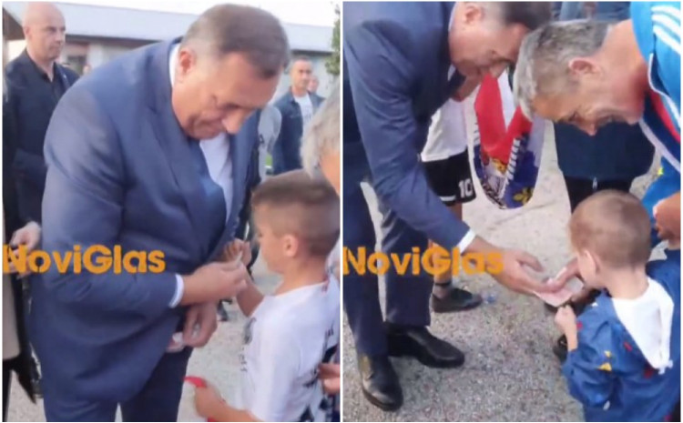 Dodik djeci dijelio novčanice od po 50 KM (VIDEO)