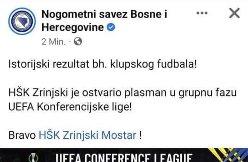 Nogometaši Zrinjskog sinoć su u dramatičnom susretu ispali iz play-offa za ulazak u Konferencijsku ligu, no Nogometni savez BiH im…