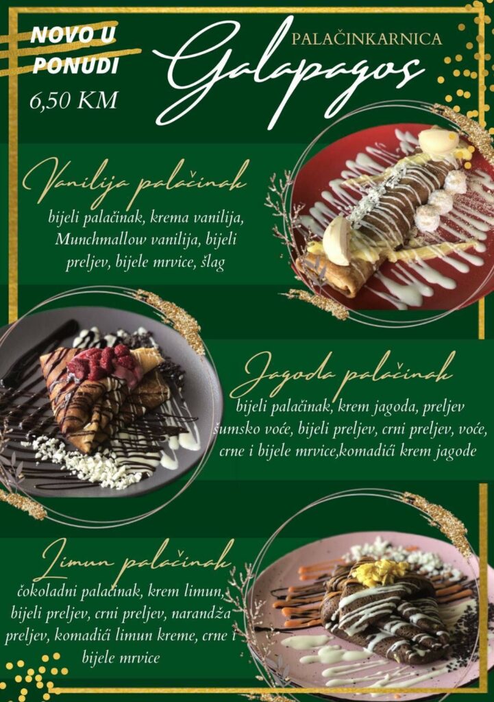 Naime, za narudžbe iznad 10 maraka, Palačinkarnica “Galapagos” najbolje palačinke u kratkom roku dostavljaju i na vaša kućna vrata. Naručite i vi svoju omiljenu poslasticu na broj 060 35 22 059!