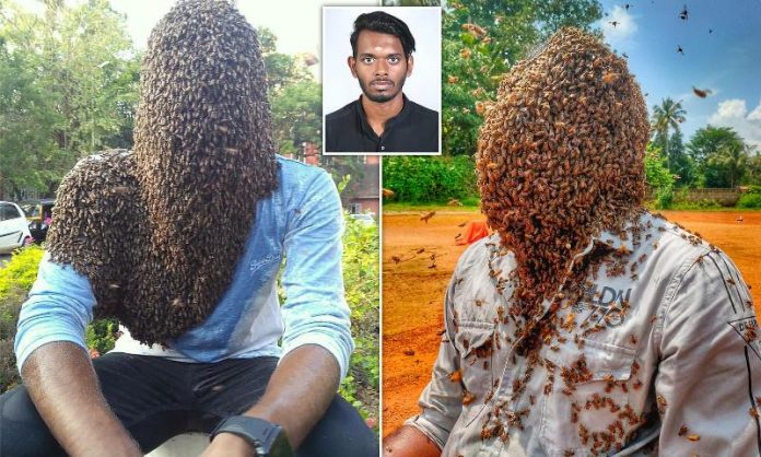 Jedan indijski pčelar toliko vjeruje svojim prijateljima insektima, da pušta njih 60.000 da mu pokriju lice.