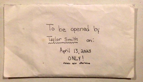 Taylor je napisala pismo, samoj sebi, zapečatila ga u kuvertu i napisala na poleđini: “Ne otvaraj do 13. travnja 2023.”