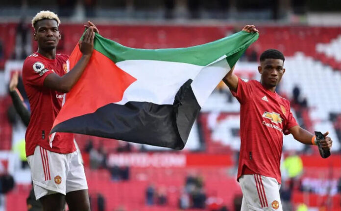 Nakon završetka utakmice između Mančester junajteda i Fulama koja je okončana remijem 1:1, Pogba i Dijalo su pozdravili navijače s palestinskom zastavom u rukama.