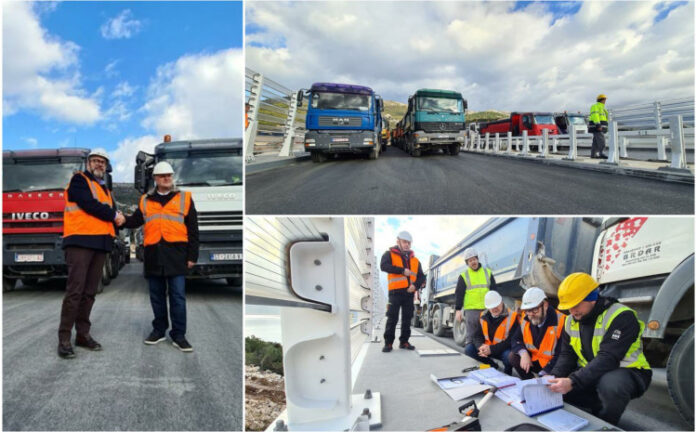 Za tu priliku na gradilište je stigao 21 kamion težine do 40 tona, kojima će se provoditi ispitivanje u saradnji sa stručnjacima s Građevinskog fakulteta u Zagrebu. Probno opterećenje provodi se na ciljanim tačkama konstrukcije u pokretu brzinama 20/40/60 kilometara na sat te pri naglom kočenju, prenosi Jutarnji list.