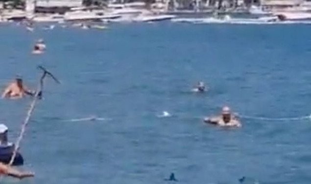 Snimak su na društvenim mrežama podijelio posmatrač, dok je smrtonosno stvorenje viđeno kako pliva prema plaži punoj djece.