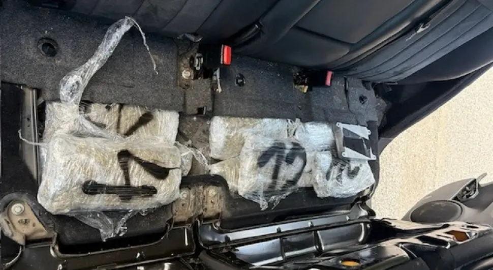 Pretresom vozila otkrivena su 23 pakovanja opojne droge na više skrivenih mjesta u vozilu i to ispod zadnjeg sjedišta, u prtljažniku automobila i u podu vozila.