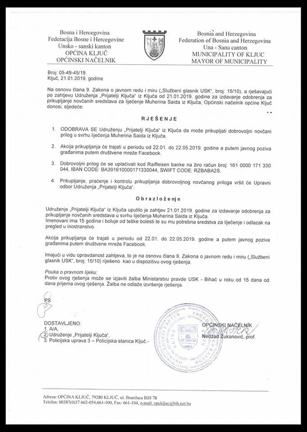 Mole se svi ljudi dobre volje da se odazovu akciji i pomognu dječaku da prohoda. Uplate možete izvršiti na račune koji su prikazani na fotografiji.