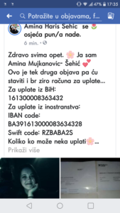 Za liječenje Amine potrebna su velika finansijska sredstva koja porodica sama ne može osigurati za liječenje ove mlade djevojke.