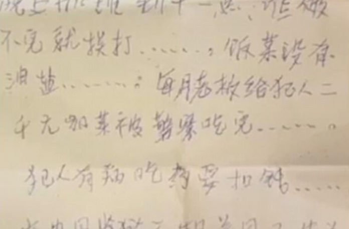 Autor poruke piše kako je zatvorenik kojega tjeraju da radi 14 sati dnevno te da mu pritom daju jako malo hrane. Također, unatoč žaljenju, lijekove ne dobiva uopće.