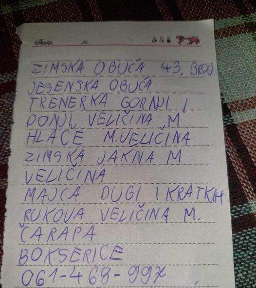 -Javio mi se jedan čovjek sa nadom da ću pomoći njegovom sinu.On ne traži novac,samo malo odjeće za njegovog sina koji je školarac ,a nažalost on nije u mogućnosti da mu to priušti. Ja ću mu pomoći ako Bog da ,a ako još neko može isto učiniti neka mi se javi u poruke pa ćemo zajedno da to prikupimo i pošaljemo poštom za Zavidoviće. Nama malo a nekome znači puno.- napisano je u objavi.
