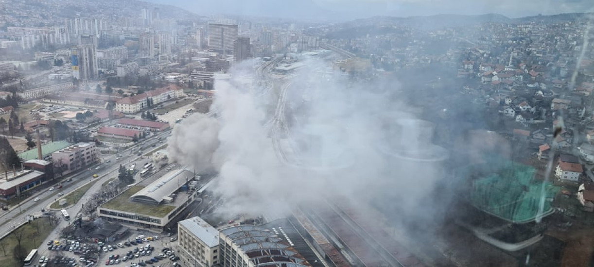 Dogodio se požar na autobuskoj stanici u Sarajevu. Gust dim se nadvio iznad autobuske stanice.