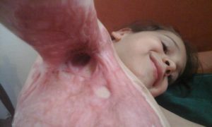 Nakon prijema na KUM Sarajevo, 15.05.2018.godine te na Kliniku dječije hirurgije, tokom previjanja u operacionoj sali uočena je duboka opekotina trećeg stepena u desnoj infarskapularnoj regiji, veličine dlana.