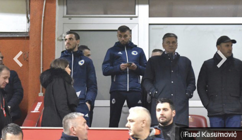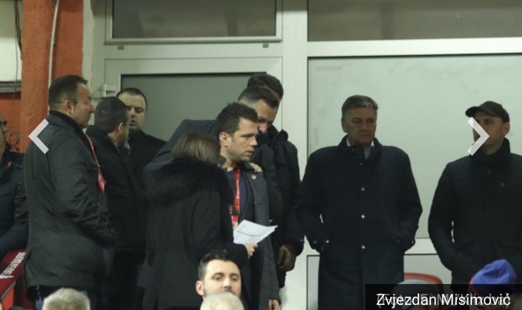 Na tribinama zeničkog stadiona nalaze se član Predsjedništva BiH Šefik Džaferović, premijer Federacije Bosne i Hercegovine Fadil Novalić, gradonačelnik Zenice Fuad Kasumović, nekadašnji reprezentativci BiH Emir Spahić, Zvjezdan Misimović i Vedin Musić, Džekina supruga Amra…