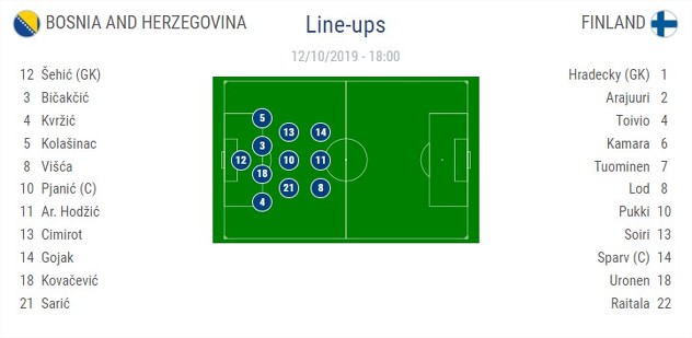 Poznati su sastavi za večerašnji duel na Bilinom Polju između BiH i Finske. Robert Prosinečki je umjesto povrijeđenog Edina Džeke u vrh napada stavio Armina Hodžića, a zanimljivo je da će u početnoj postavi zaigrati i Adnan Kovačević i Zoran Kvržić.