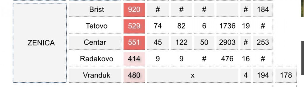 Najkritičnije je na mjernom mjestu Brist, gdje nivo čestica sumpordioksida iznosi 920, u Tetovu 529, dok je u centru Zenice nivo čestica SO2 551.