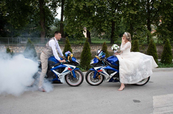 Ono što ovaj mladi, novopečeni bračni par dodatno karakteriše jeste njihova ljubav prema motociklima.