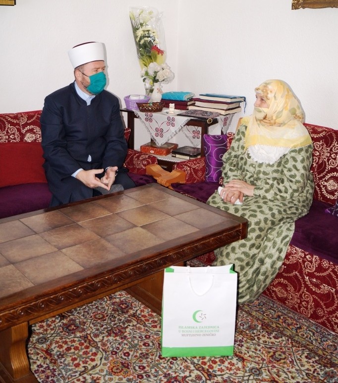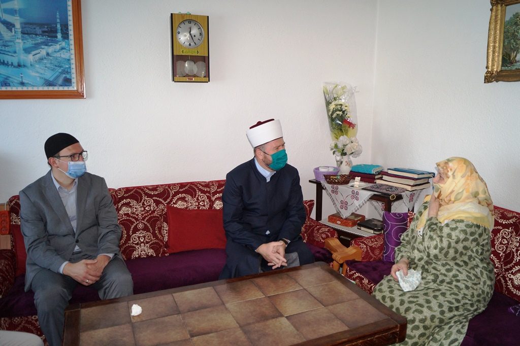 Zenica, 23. 04. 2020. – U okviru predramazanskih aktivnosti muftija zenički hfz. dr. Mevludin ef. Dizdarević danas je u džematu Stranjani kod Zenice, zajedno sa mjesnim imamom Reuf ef. Ibreljićem, posjetio Smailu Kovač, majku šehida Armin ef. Kovača.