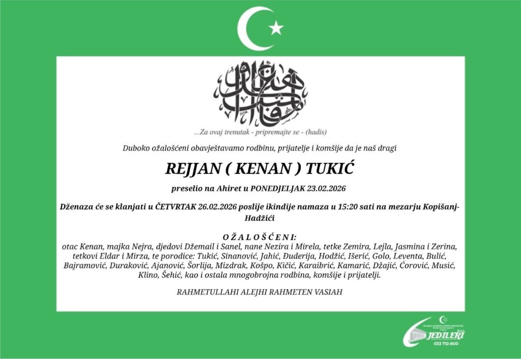 Sa neizmjernom tugom obavještavamo javnost da je maleni Rejjan, beba Nejre i Kenana Tukića, preselio nakon teške i hrabre borbe za život, piše 072info.