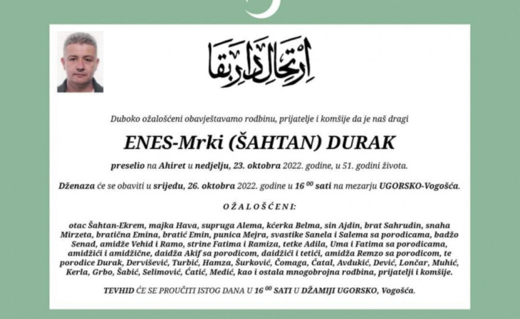 Dženaza će biti klanjana sutra u mjestu Ugorsko.