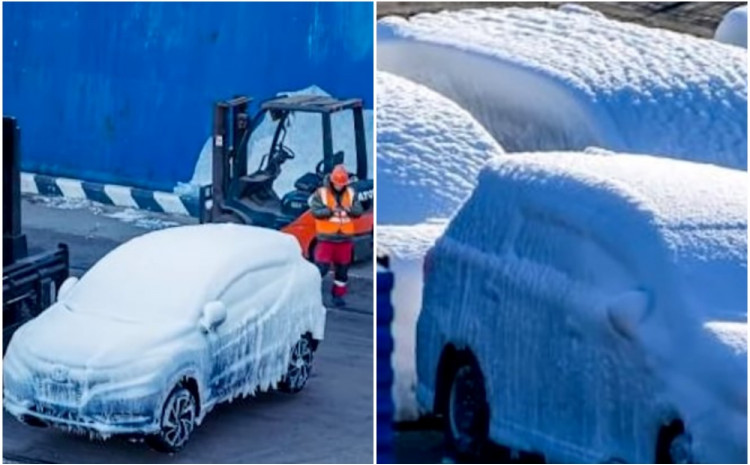 Brod koji je prevozio polovne automobile iz Japana u Rusiju, uplovio je u luku Vladivostok sa palubom okovanom ledom. S obzirom da su četvorotočkaši bili smješteni na otvorenoj palubi, istovareni su potpuno prekriveni debelim slojem leda.