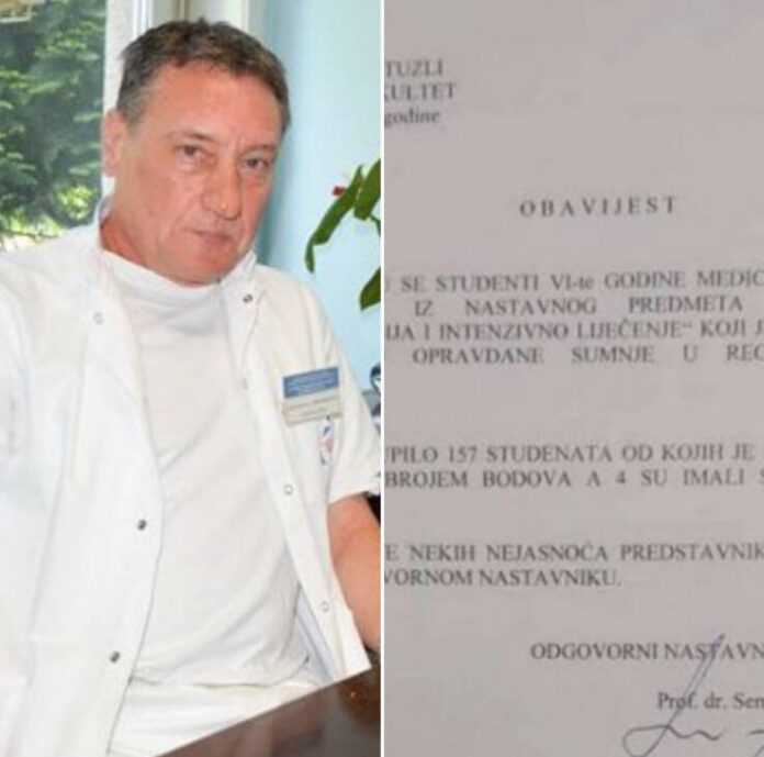 Ovo za “Avaz” govori prof. dr. Semir Imamović, profesor Medicinskog fakulteta u Tuzli koji je poništio ispit studentima. Naime, na ispit iz predmeta “Anesteziologija, reanimatologija i intenzivno liječenje” izašlo je 157 studenata šeste godine ovog fakulteta i svi su dobili desetke.