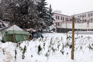 Demobilisani borci od 12. juna protestiraju ispred zgrade Vlade Federacije. Zimu provode u veoma teškim uslovima.